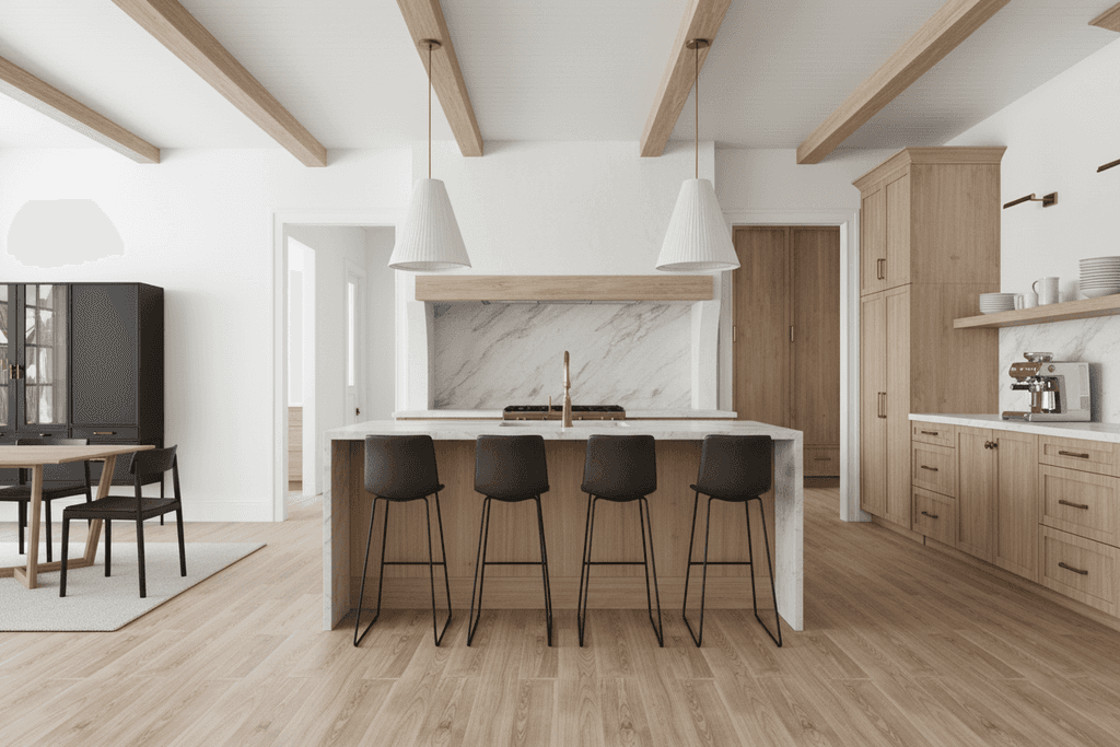 Drop in a single inspiration board and the AI will interpret the colors, finishes, and style. Then translate them into your final image.