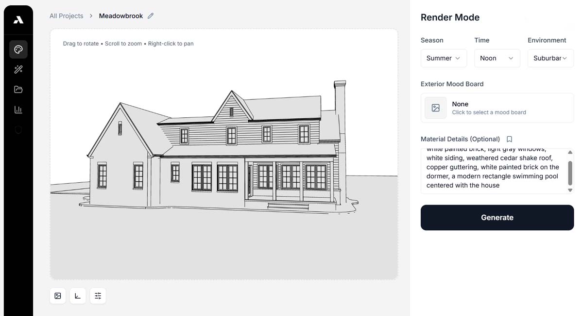 Because it is built for designers and builders, it avoids the unpredictable results that often come from general-purpose image generators. The output stays grounded in real-world construction and layout.